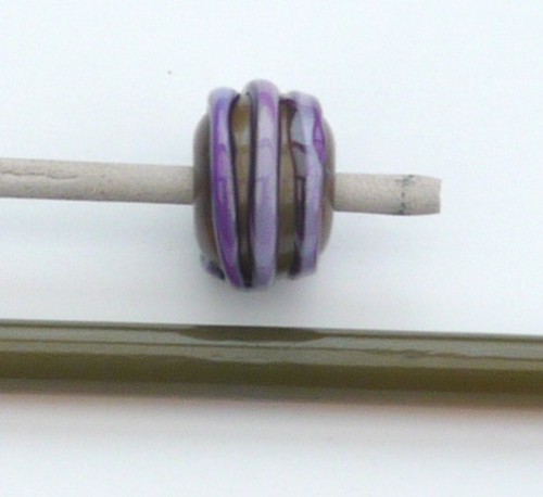 Here are the spiral beads I made to go on the purple tube. I used Reichenback Purple Rose on Effetre Tourquoise 232 and CIM Elphalba.