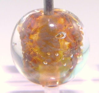 Again this was Straw Yellow but this time I rolled it in the frit, added some twirls and then encased. There are some lovely blues in there but they are only visible in the light of a spotlight. it's still very dark with lots of brown.