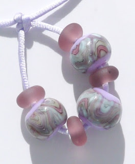 I also had another play with the Cloud Busting silver infused shards I bought from Frit'n'chips. This time I layered it on some Effetre Light Silver Pink. This is a hollow bead.