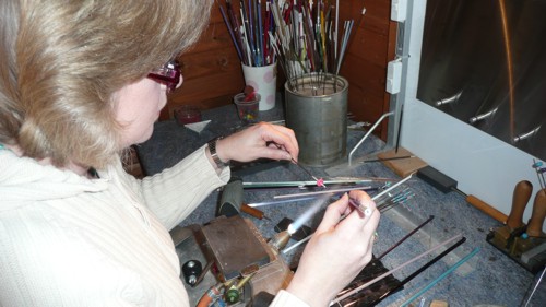 | Making beads at Laura Sparlings |