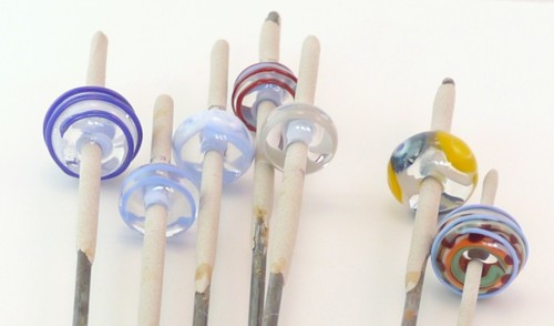 I'm still a bit unsure as to which colour dots of glass will show up the best so made a couple of quick test beads.
