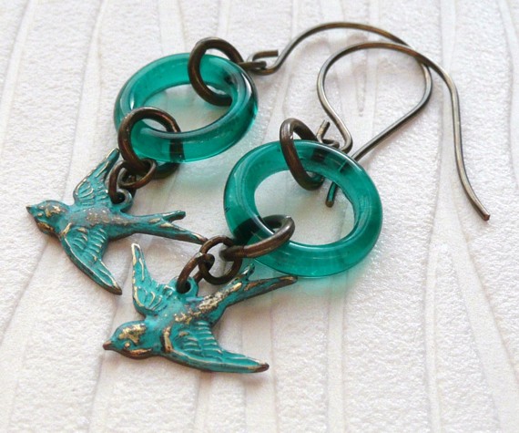 Aren't they sweet, I applied the patina to the little swallows so that they matched the rings.